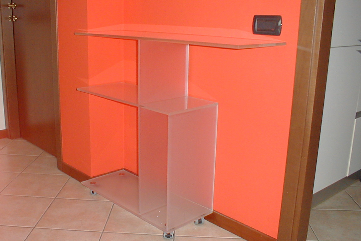 Creiamo anche pareti divisorie, parapetti e gradini per scale e soppalchi, pensiline e tettoie, piani per lavabo anche retrolaccati e antigraffio, complementi d'arredo saldati a raggi UV, tavoli e tavolini, tutto su misura!