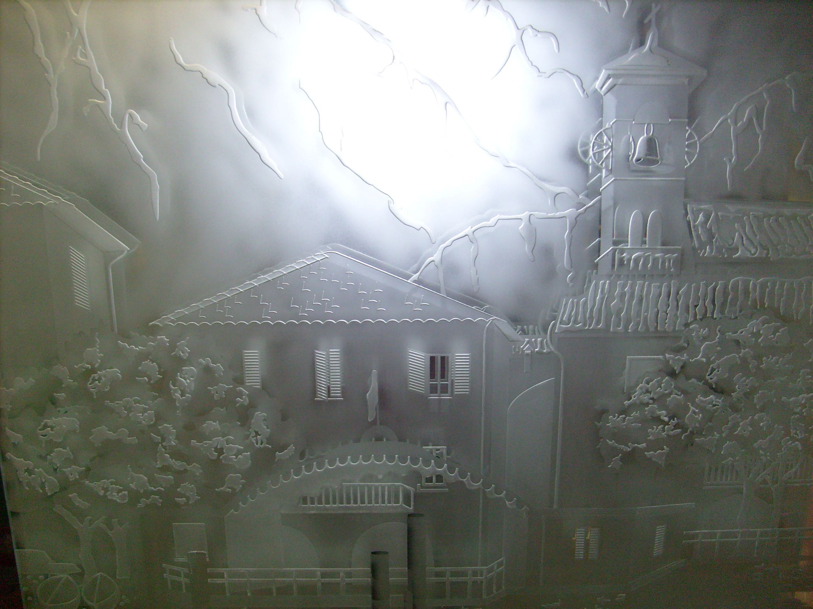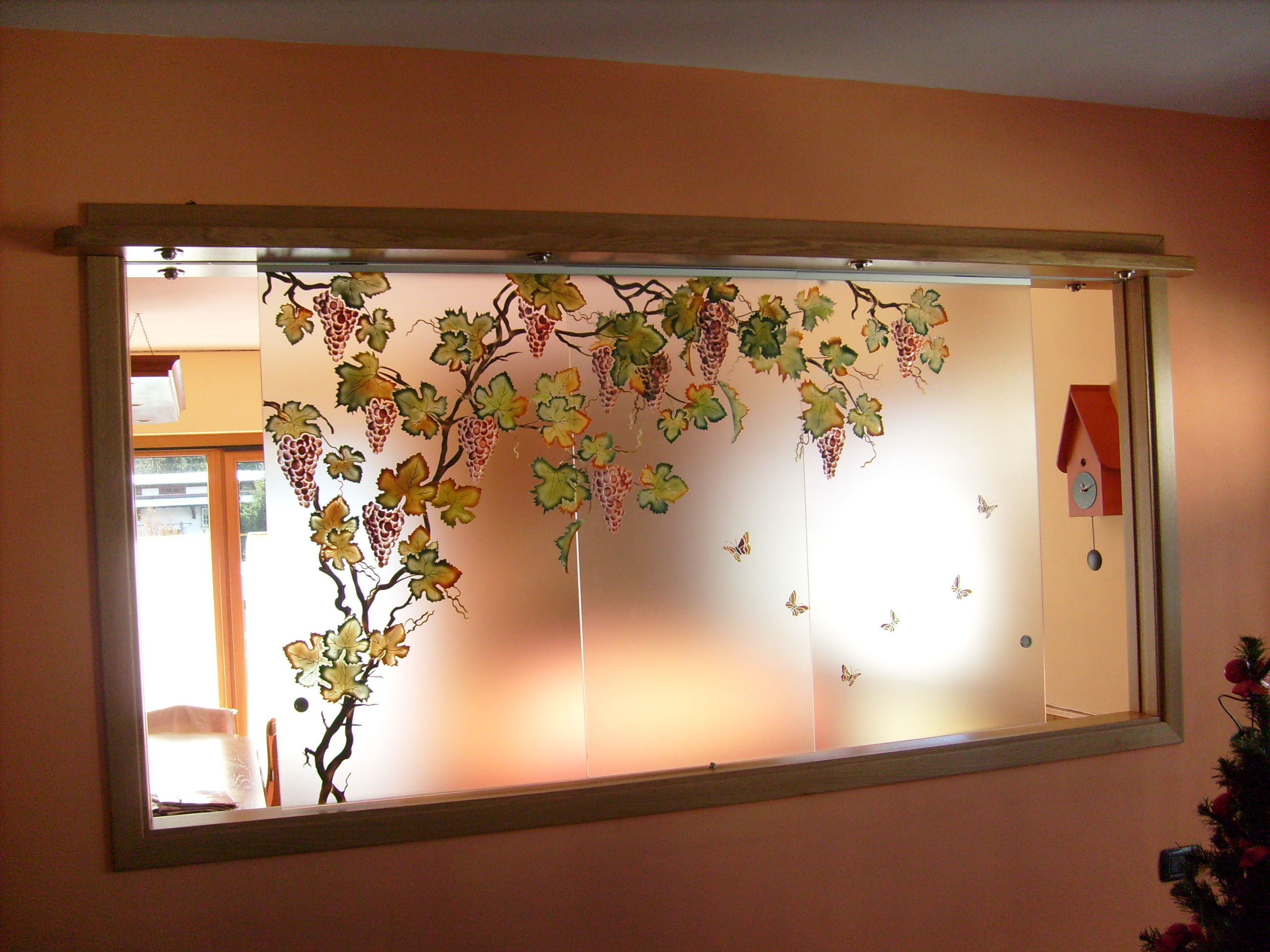 Realizziamo vetrate artistiche sabbiate, incise, sfumate, con decori dipinti a mano, in bassorilievo e in foglia oro.